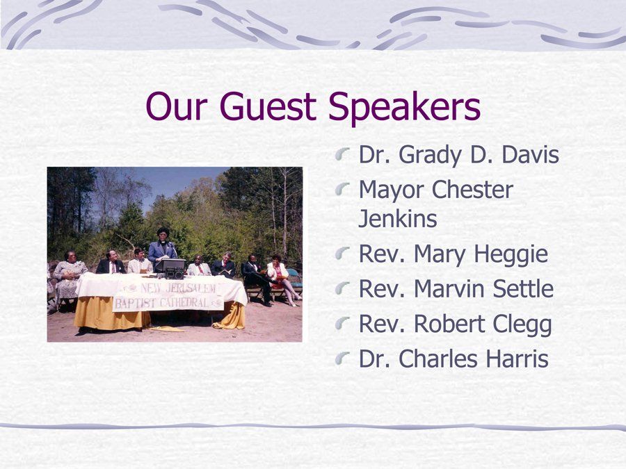 Shortly thereafter, the fellowship voted to seek membership in the Yates Baptist Association (YBA). The YBA, at its annual meeting held on October 27, 1986 voted to accept New Jerusalem into its association. By virtue of our membership in the YBA, our church is a part of the Southern Baptist Convention.